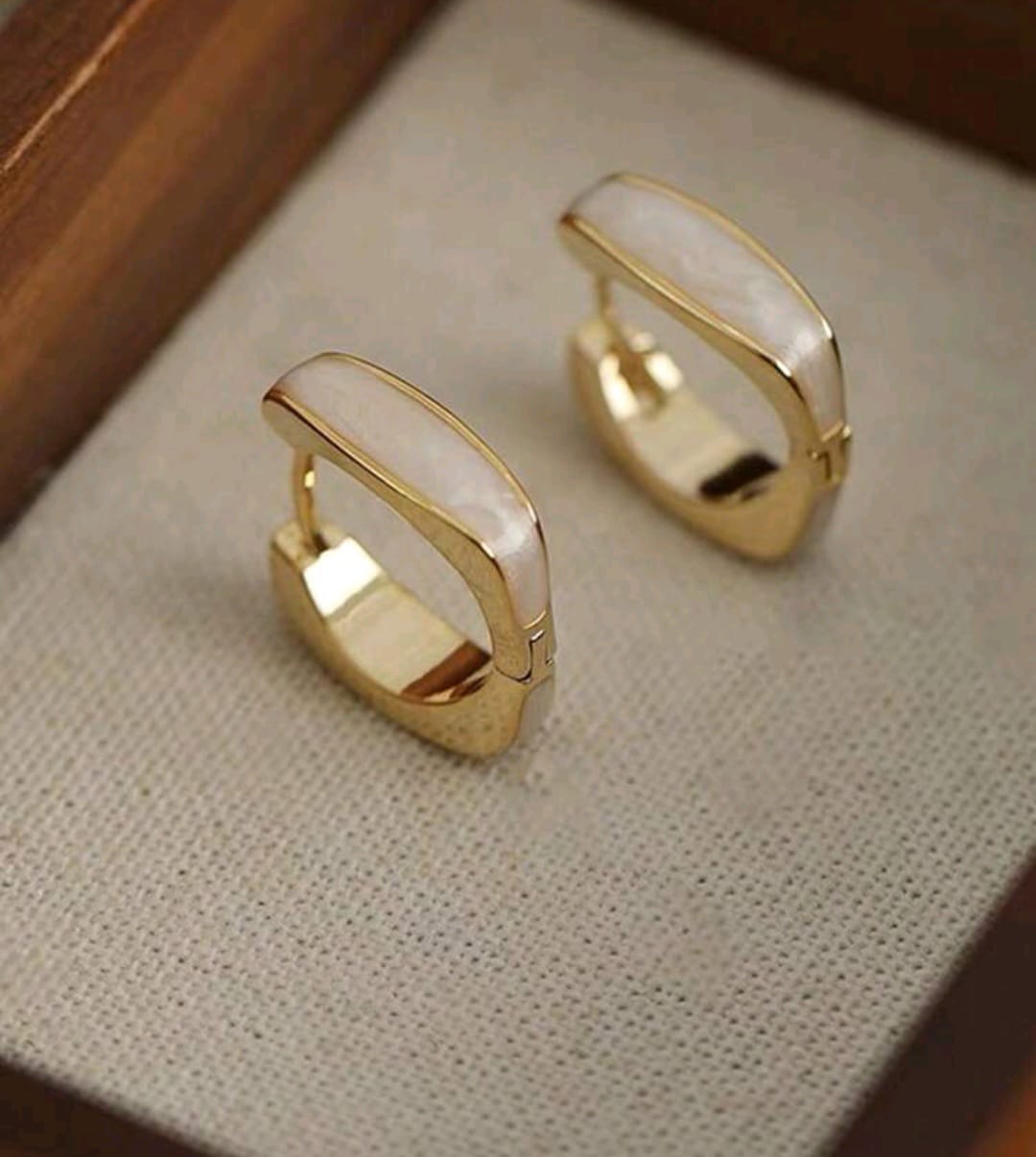 Brinco argola com detalhe em madre pérola é a combinação perfeita entre o clássico e o moderno.