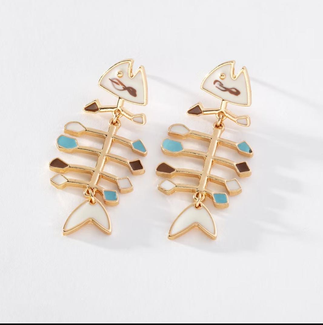 Brinco osso de peixe branco esmaltado em tamanho médio e peso leve.