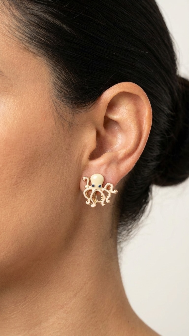 Brinco em modelo polvo esmaltado com banho de ródio branco.
